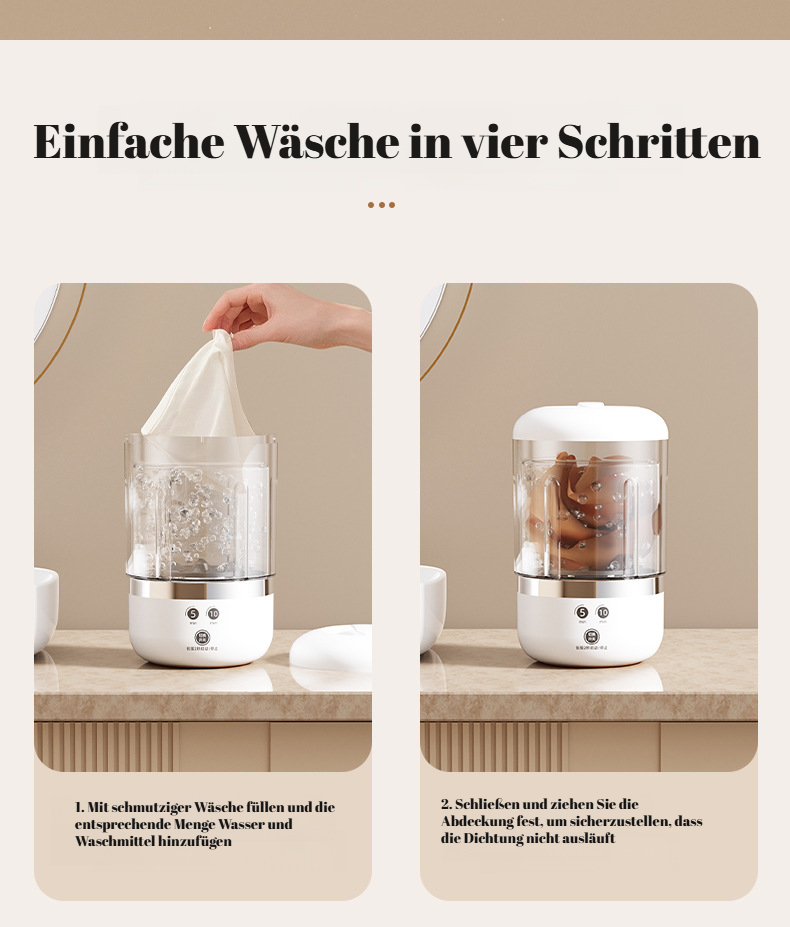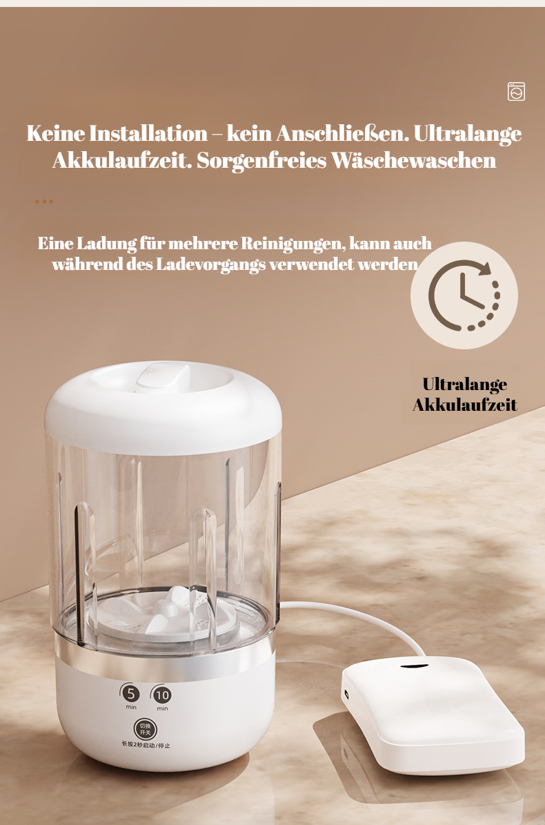 Tragbare Waschmaschine, sanfte Handwäsche, langlebige Batterie, Touchscreen-Bedienung